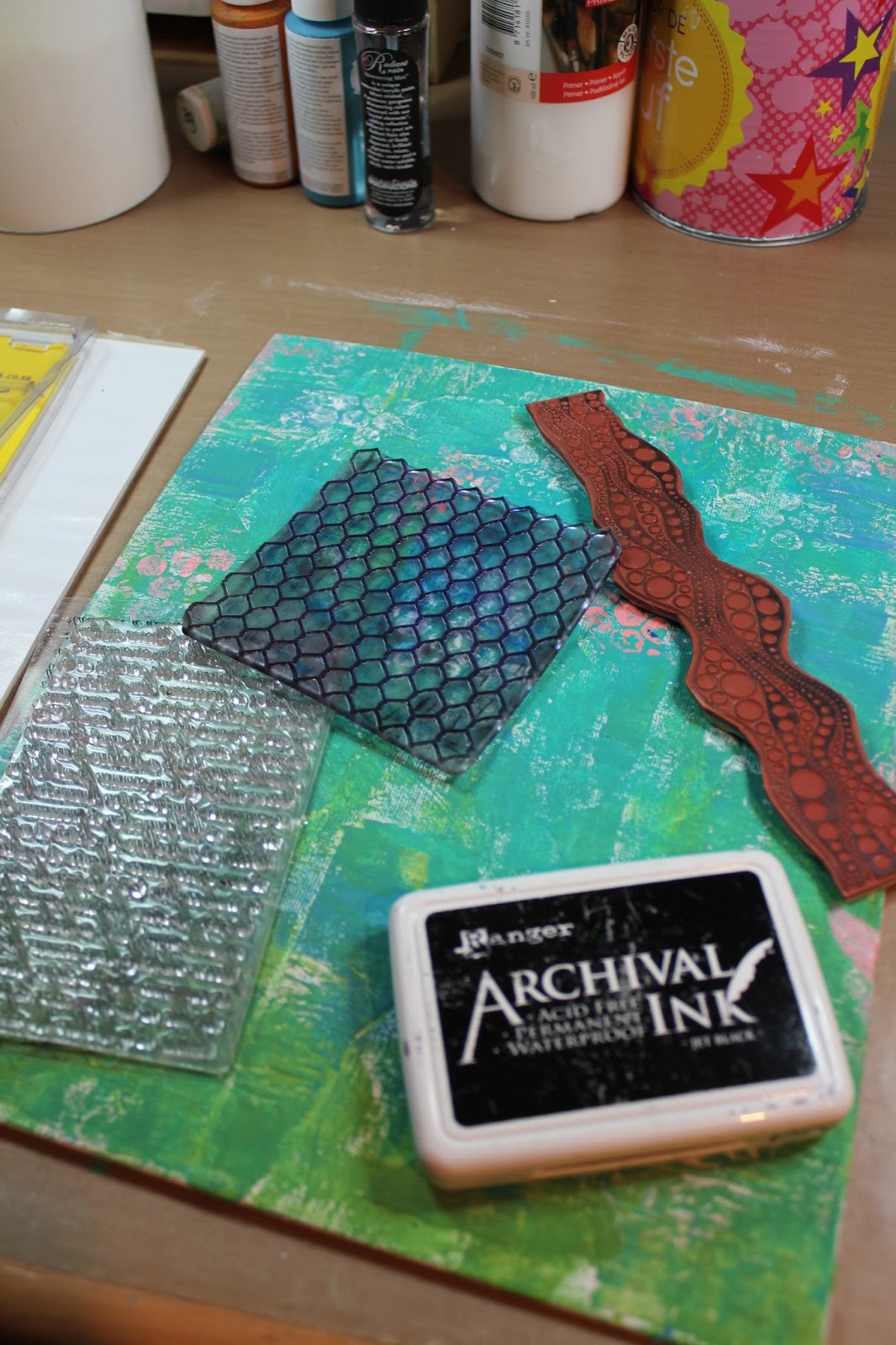 Met watervaste inkt en stempels op de achtergrond stempelen.